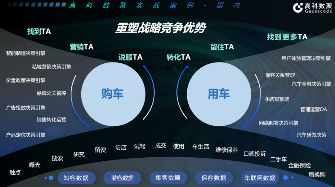 找到更多的TA:为了进一步提升销售水平, 不朽情缘 基于信息反馈优化模型算法,构建车联网营销外拓能力。基于人、车,以及时空数据,从目标人群标签圈选、目标人群聚类挖掘、核心地块及相关渠道锁定、以及主动触达等方式,为车企圈选高价值营销点位。提升线上线下全渠道营销触达和运营变现能力。