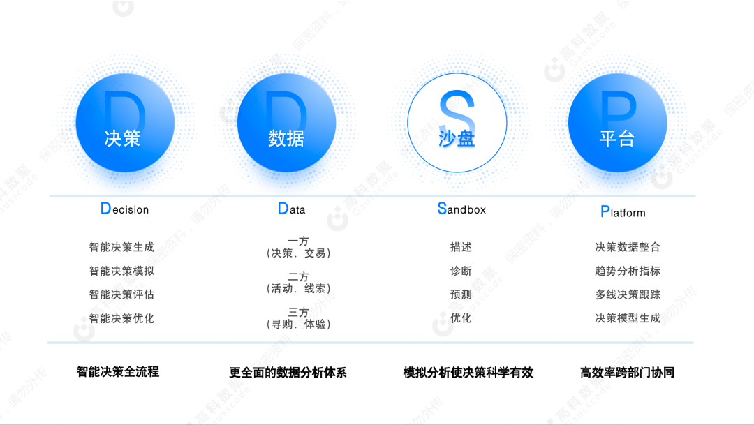 不朽情缘 智慧决策平台DDSP(Decision  Data Sandbox  Platform)从销售、市场、服务,以及智能制造等重要应用场景出发,从传统的专家决策方式向基于数据驱动的数智化决策进行全面升级。
